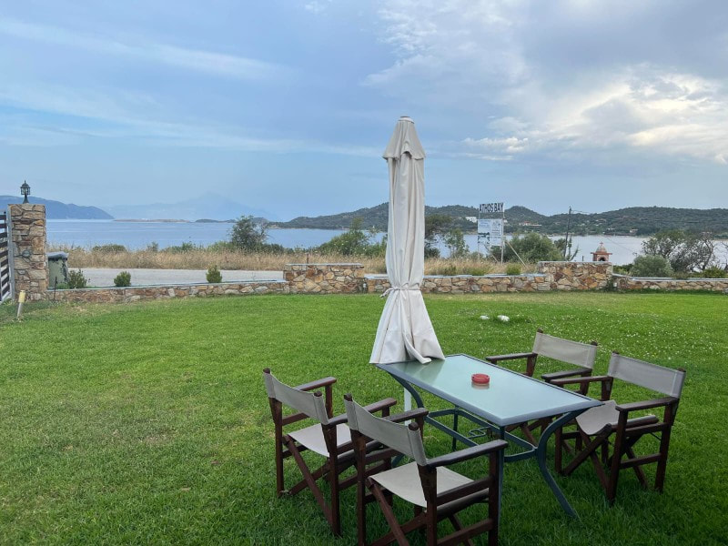 Tο Athos Bay Villa το οποίο χτίστηκε στα μέσα του 2011, ειναι οικογενειακή επιχείρηση και βρίσκεται στην κορυφή του λόφου με άμεση θέα τη θάλασσα και την χερσόνησο του Αγίου 'Ορους, 350 μέτρα από το χωριό της Αμμουλιανής στον δρόμο που οδηγεί στις δύο πιο οργανωμένες παραλίες του νησιού