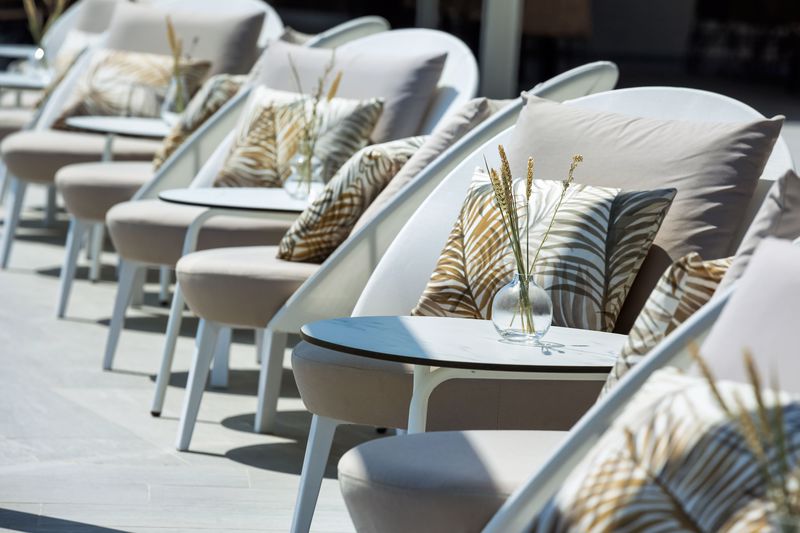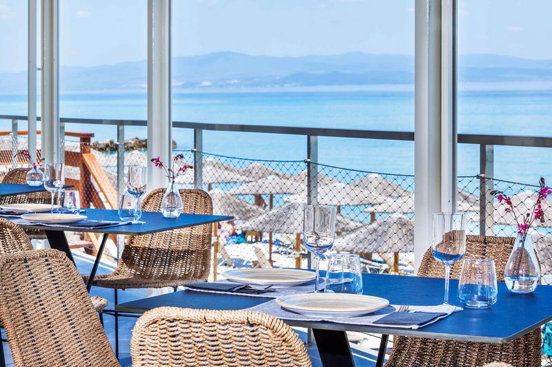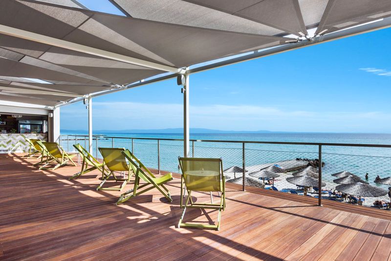 From your room you can enjoy the panoramic view of the gulf. In the departments of the hotel the pool bar, the restaurant and the snack bar you can enjoy cold drinks and food right beside the enchanting sea. The beach is repeatedly rewarded with the blue flag of European Union as one of the cleanest beaches.